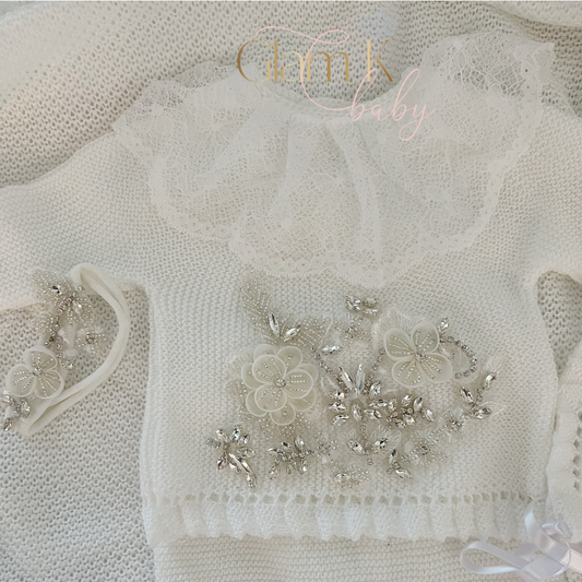 Each knit set is Handcrafted, Uniquely and Elegantly made. These Infant-wear sets are to be worn during those unforgettable moments in Your baby's life, that you will truly treasure for years to come.