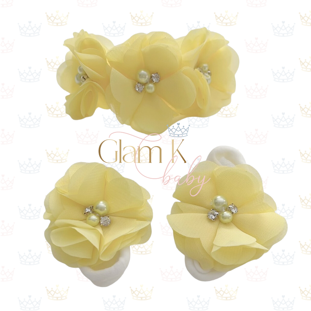 This extremely gorgeous delicate beauty is a 2PC set! Not only do you get a pair of these Gorgeous bare foot sandals, but a matching head band too!