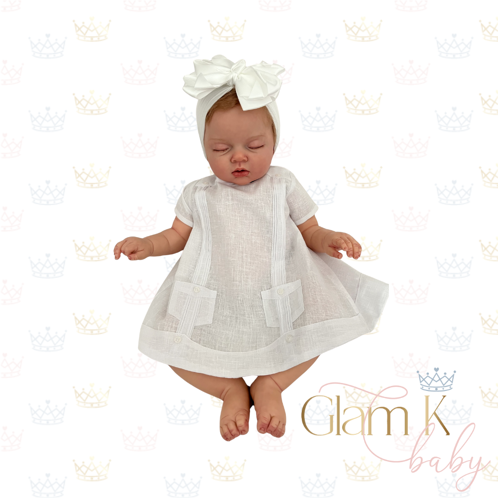 This adorable chacabana set is too cute, is a 2pc comes with shirt & short pants. This is a charming, miniature version of the traditional Caribbean chacabana shirt , tailored into an adorable dress for little ones. It features the signature straight, clean lines and front button closure, often with decorative vertical seams or embroidered accents. Crafted from lightweight , breathable fabrics it’s designed to keep babies cool and comfortable in warm weather. The style blends elegance and ease, making it perfect for special occasions, family gatherings, or simply adding a touch of island flair to everyday wear.
