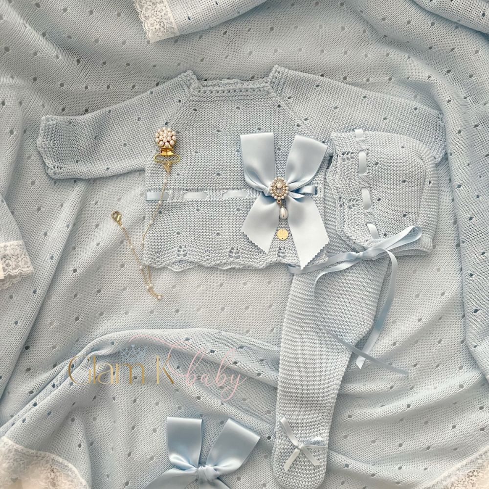 Handcrafted in Europe, each Knit Set is uniquely and elegantly made. These Infant-wear sets are to be worn during those unforgettable moments in Your baby's life, that you will truly treasure for years to come.