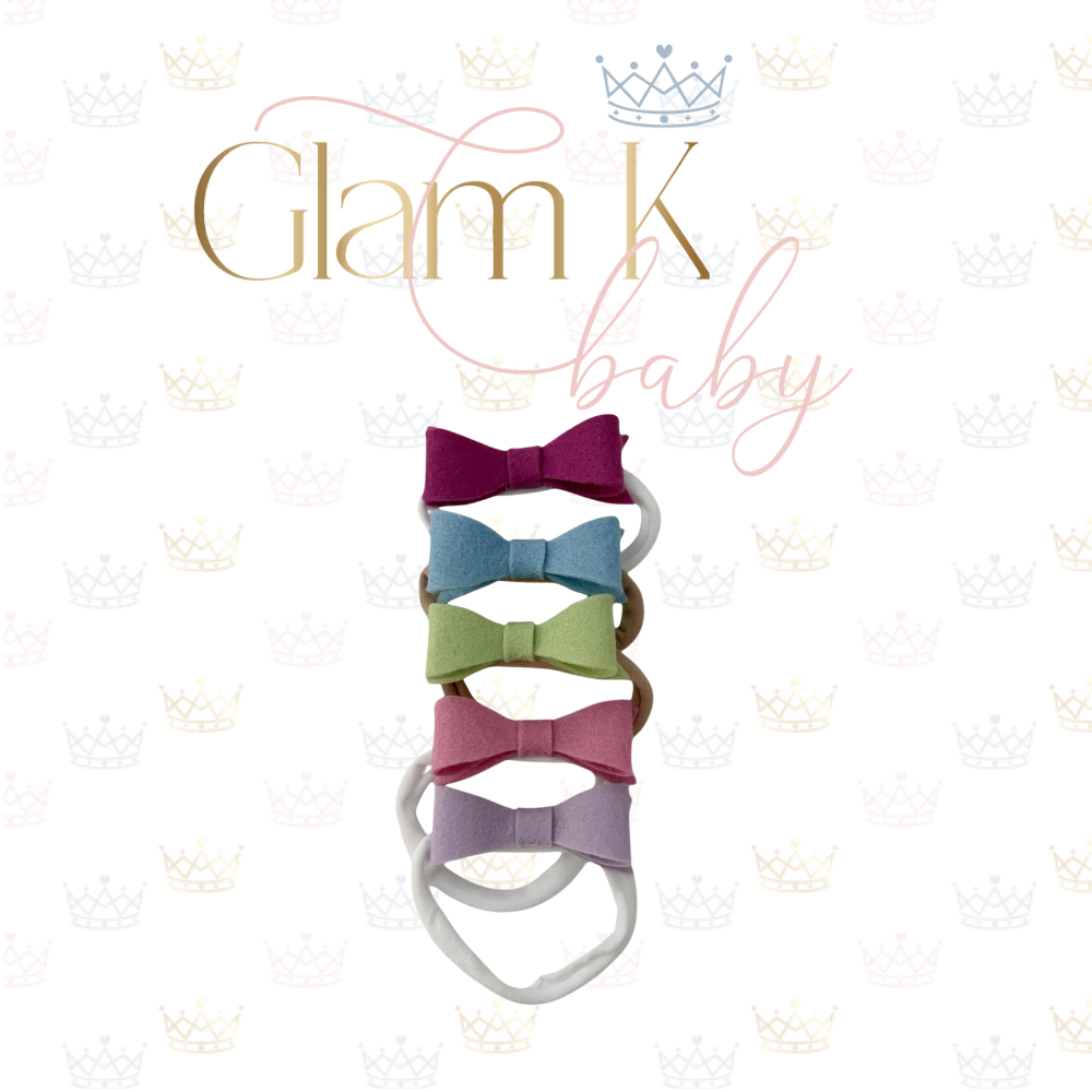 These wool felt bows is a set of 5 headbands, perfectly for newborn .