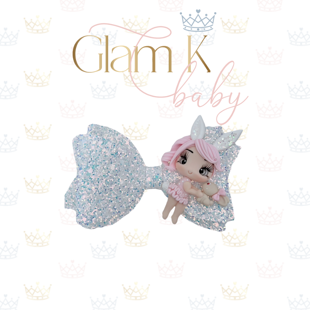Trendy Glitter Bow with Bunny Decorative charm perfect for easter!